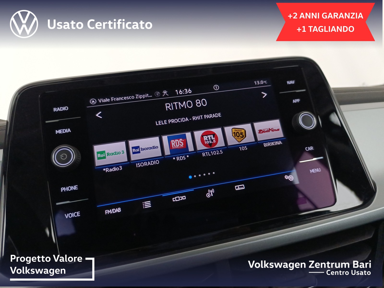 Questa vettura - N° rif. V30713 - è disponibile presso la sede di Volkswagen Zentrum Bari Centro Usato - Via Pasquale La Rotella, 2, 70132 Bari (BA).