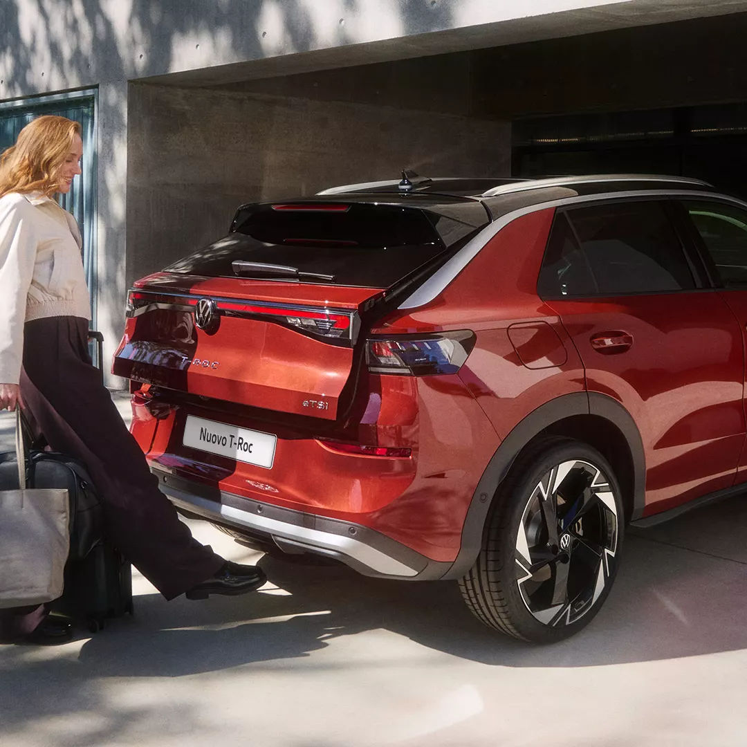 Nuovo T‑Roc si evolve nel design e nelle linee degli esterni, con uno stile ancora più deciso e tecnologico. Linee scolpite, firma luminosa iconica e dettagli esclusivi ne esaltano il carattere dinamico e distintivo. Gli interni di Nuovo T‑Roc offrono un perfetto equilibrio tra tecnologia e versatilità, con spazi generosi, soluzioni intelligenti e dotazioni di pregio pensate per rendere ogni viaggio ancora più piacevole.